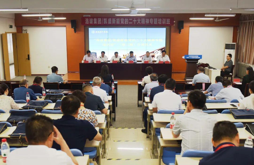 6月12日——6月20日,洛玻集团/凯盛新能党委按照中国建材集团党委和凯盛科技集团党委工作部署,在洛阳理工学院组织举办两期党的二十大精神专题培训班。深入学习贯彻党的二十大精神,引领广大党员干部全面学习领会习近平新时代中国特色社会主义思想,加快落实落地凯盛科技集团玻璃新材料“3+1”战略布局,为建设世界一流新能源材料科技产业集团提供坚强政治保证和组织保证。洛阳理工学院党委书记陈岩出席开班式并致辞;洛玻集团/凯盛新能党委书记、董事长谢军作开班动员讲话;凯盛科技集团原党委副书记、工会主席,洛玻集团原党委书记、董事长李志铭出席开班式并讲授第一课;洛阳理工学院副校长韩洪涛,洛玻集团党委副书记、总经理,凯盛新能党委副书记、总裁马炎,洛玻集团党委委员、凯盛新能执行总裁章榕出席开班式,洛玻集团/凯盛新能党委副书记何清波主持开班式。